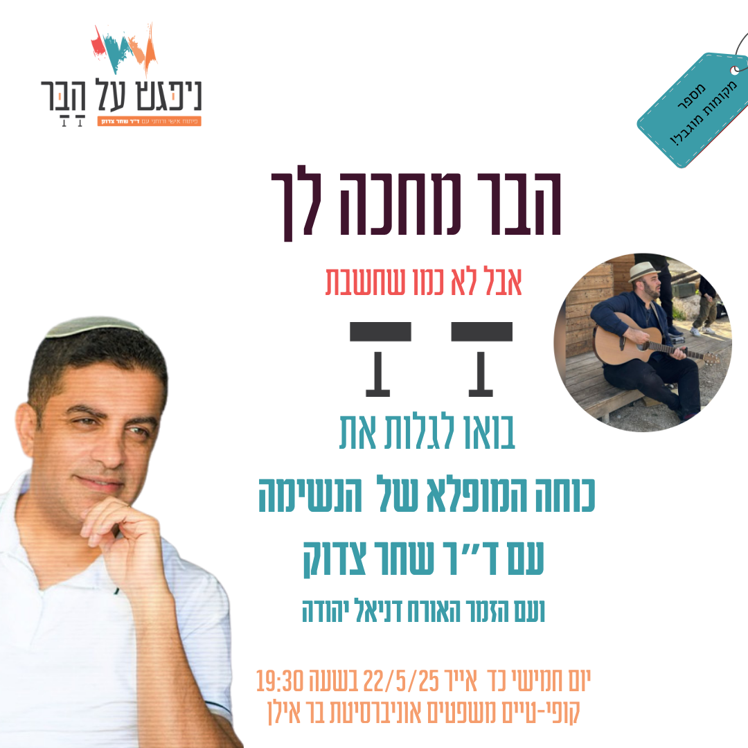 בהרצאה נצא למסע מרתק מהמקורות ביהדות ובמסורות המזרח, ועד למחקרי המדע העדכניים ביותר ונבין כיצד הנשימה משפיעה על ויסות רגשי, הפחתת חרדה ושחיקה, ואף על התמודדות עם כאב פיזי.